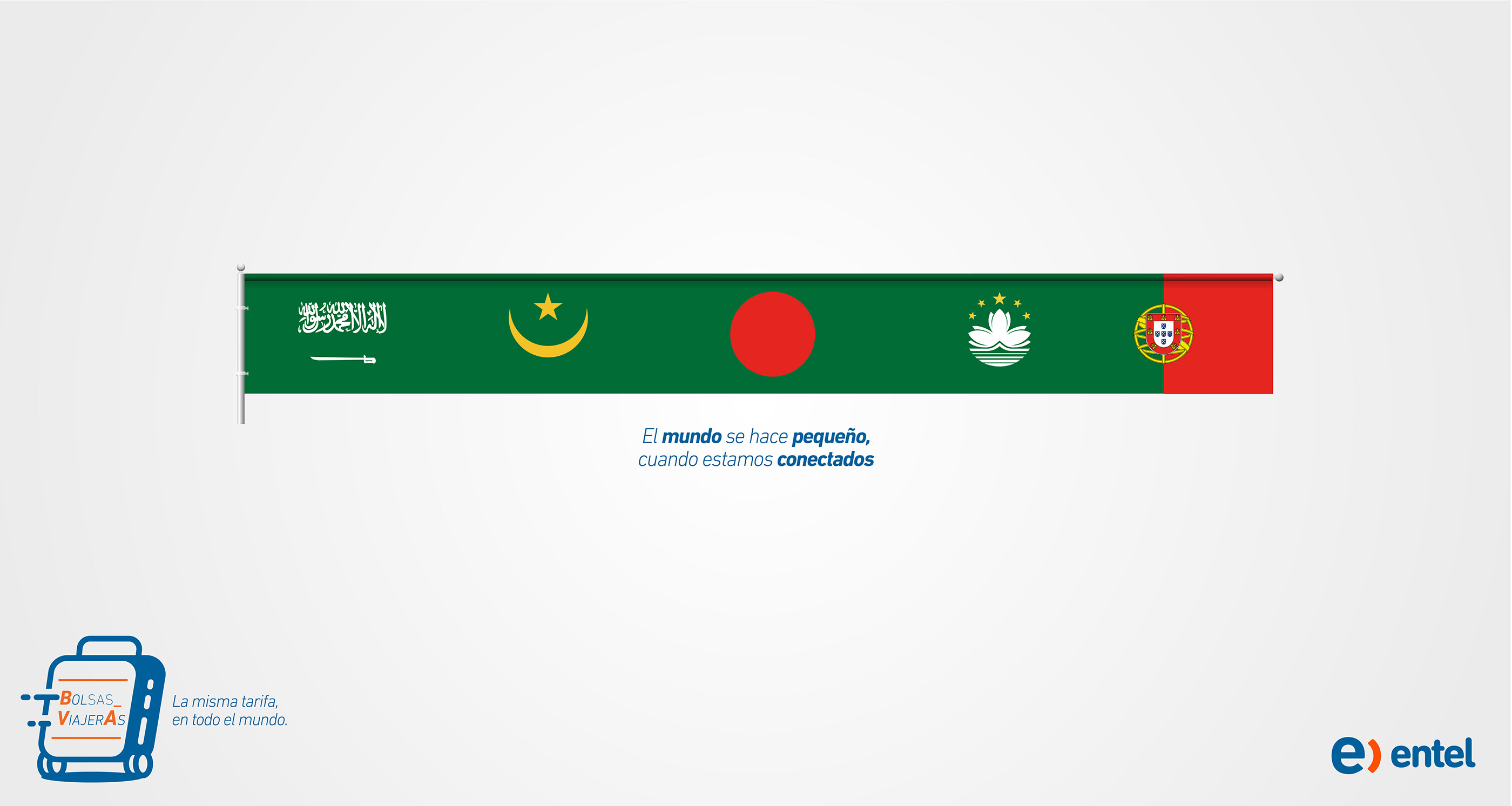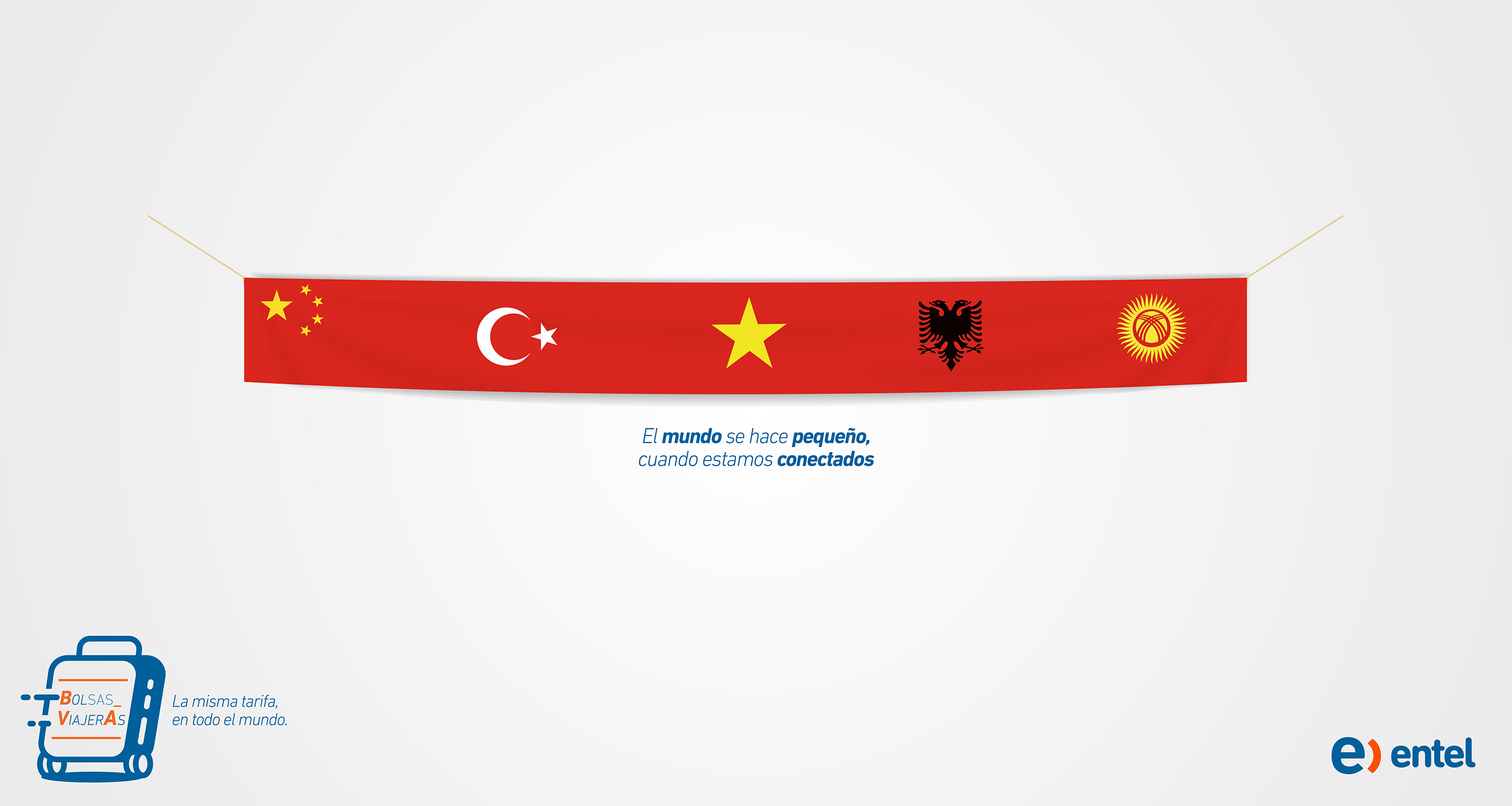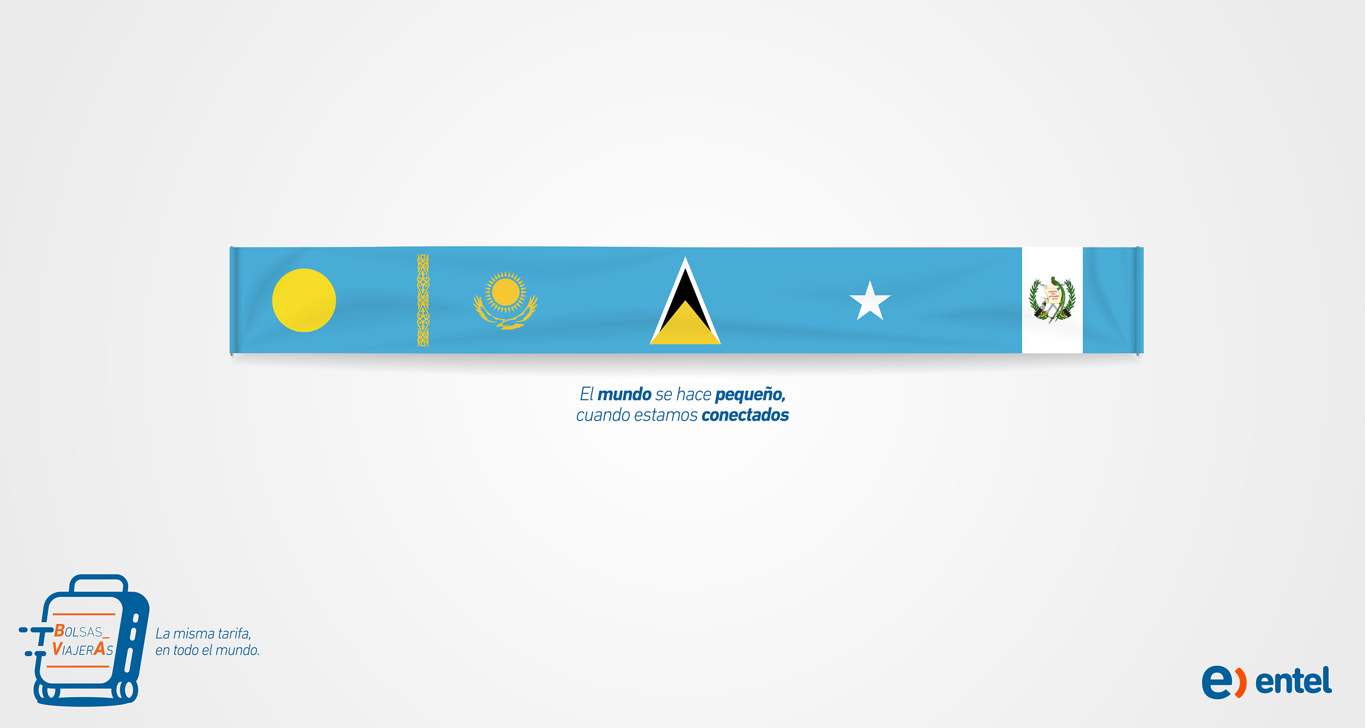 Headline: “The world gets smaller when we’re connected” Tagline: “Travelling Package” – “The same price anywhere in the world”